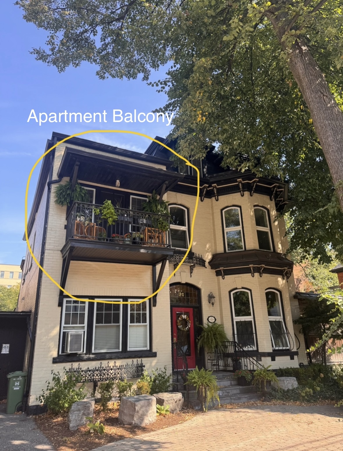 Full kitchen Two entrances Great balcony. Reseved parking at back step.